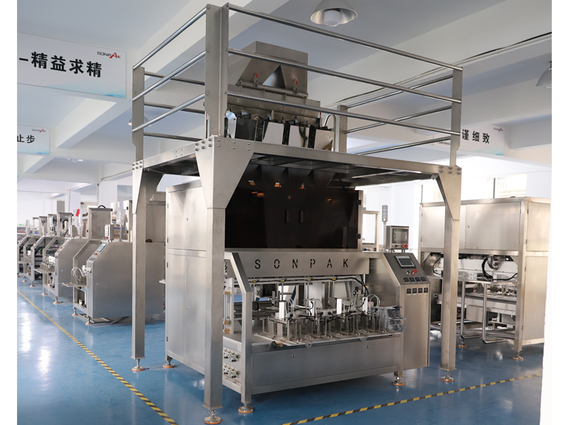 適用于西米、珍珠粉圓等形狀均勻、流動性較好的顆粒物料的真空整形包裝。全自動化,有效節約生產成本,能自動取袋、送袋、開袋、上袋、充填、整形抽真空、封口、成品輸出。